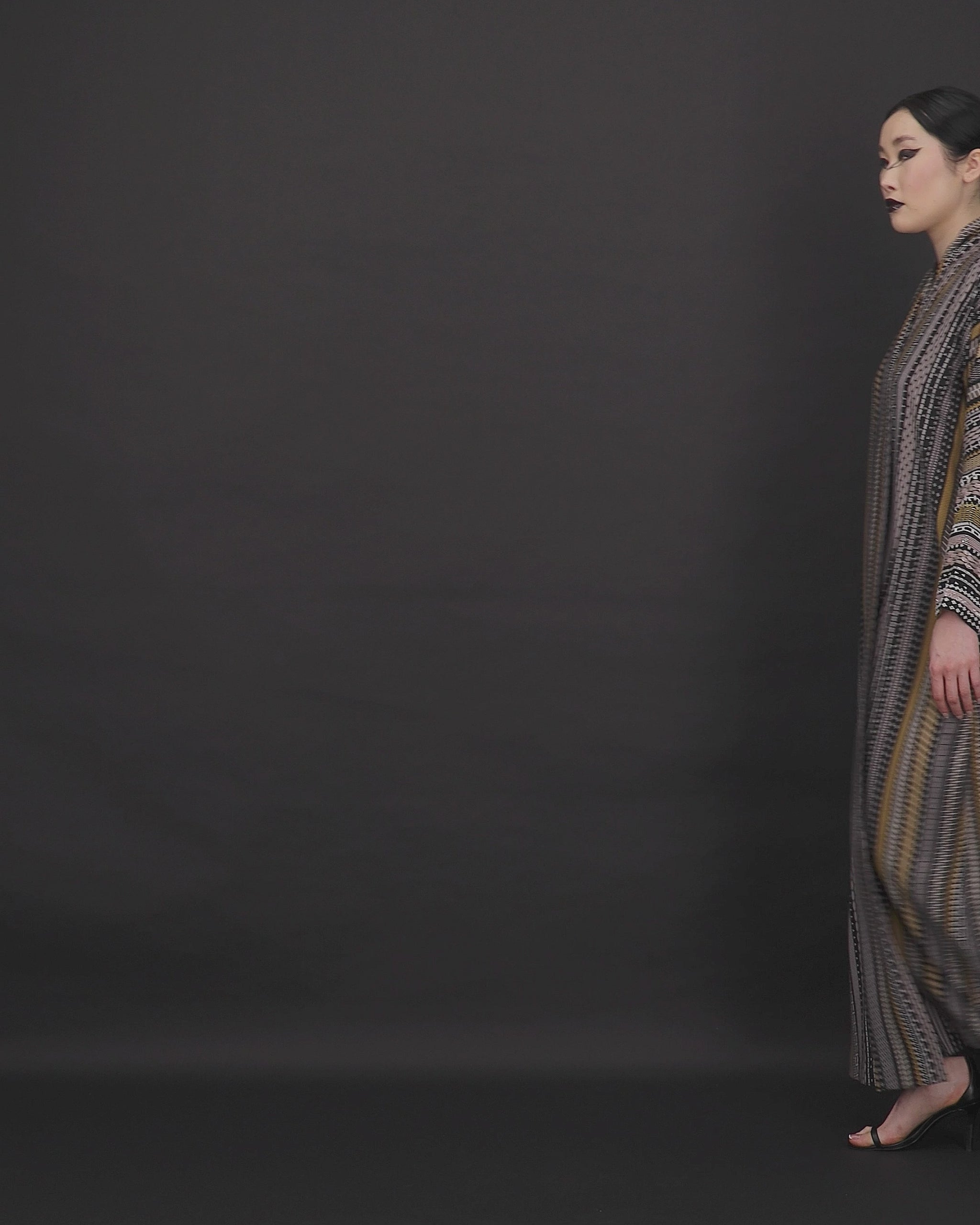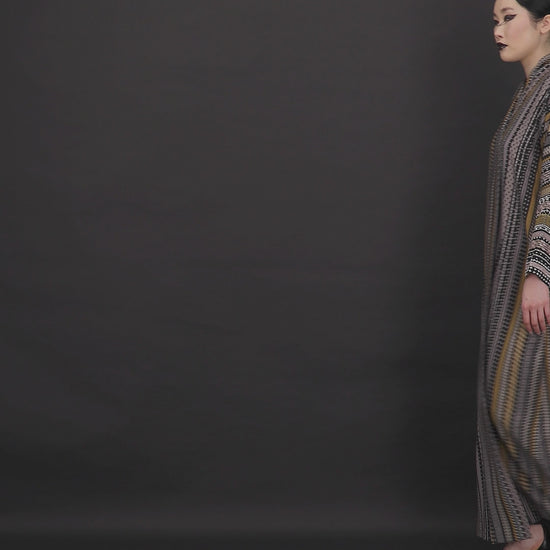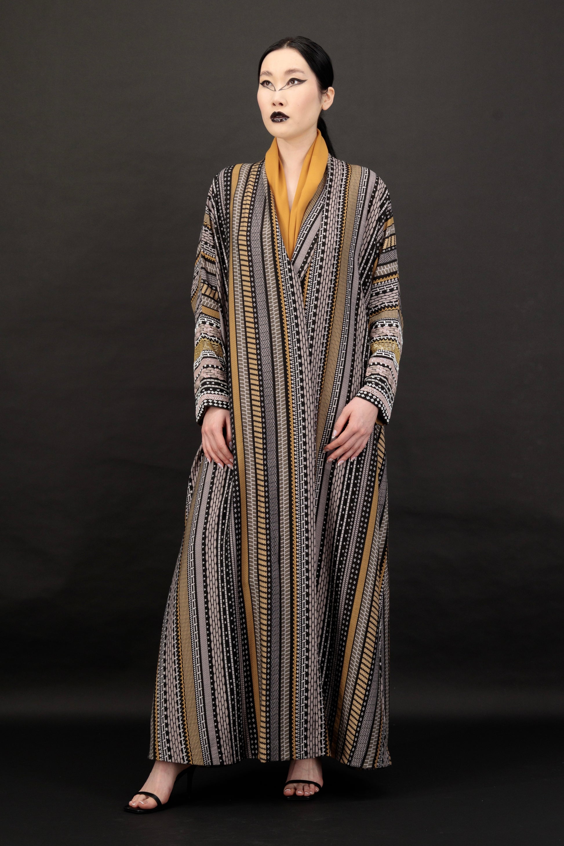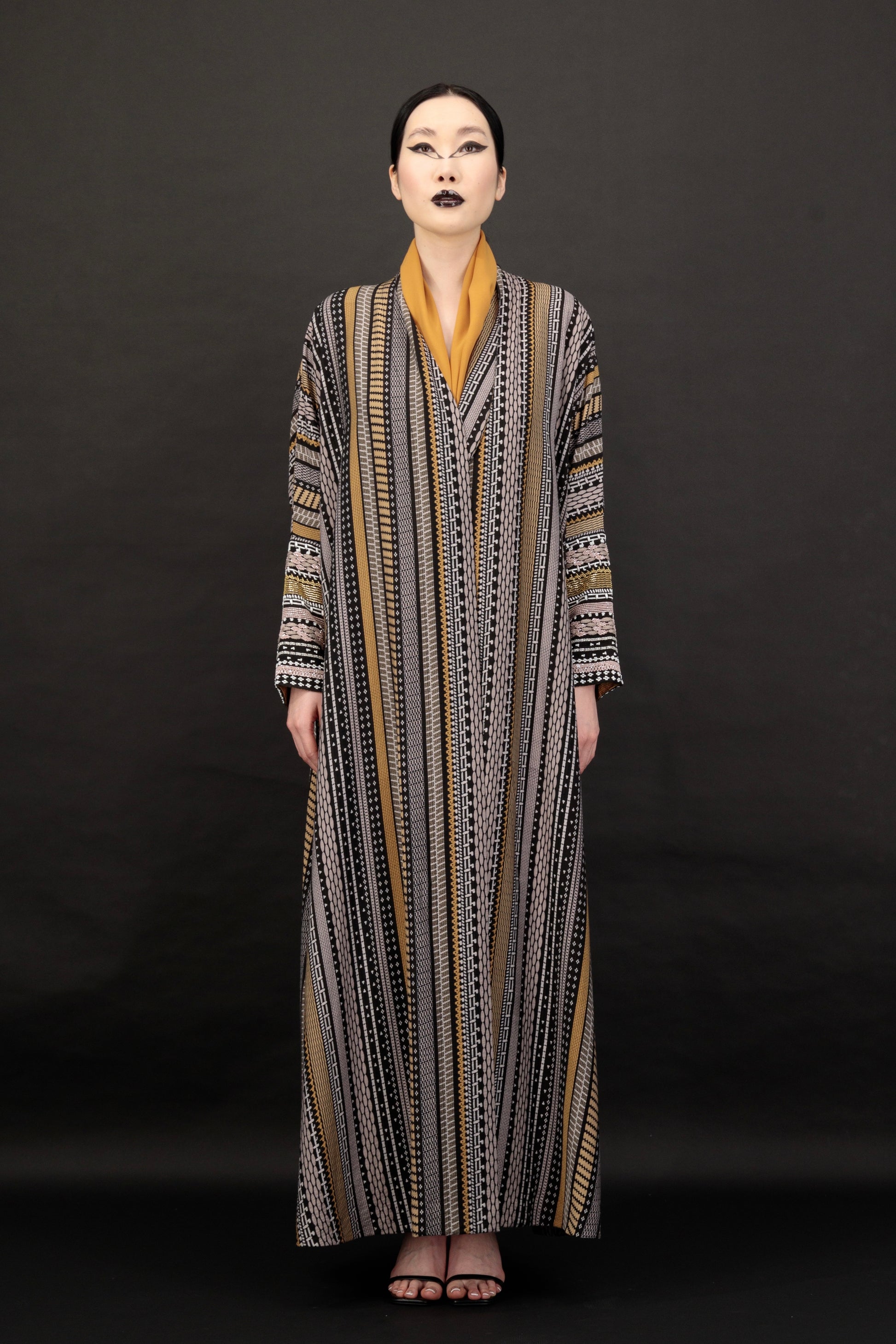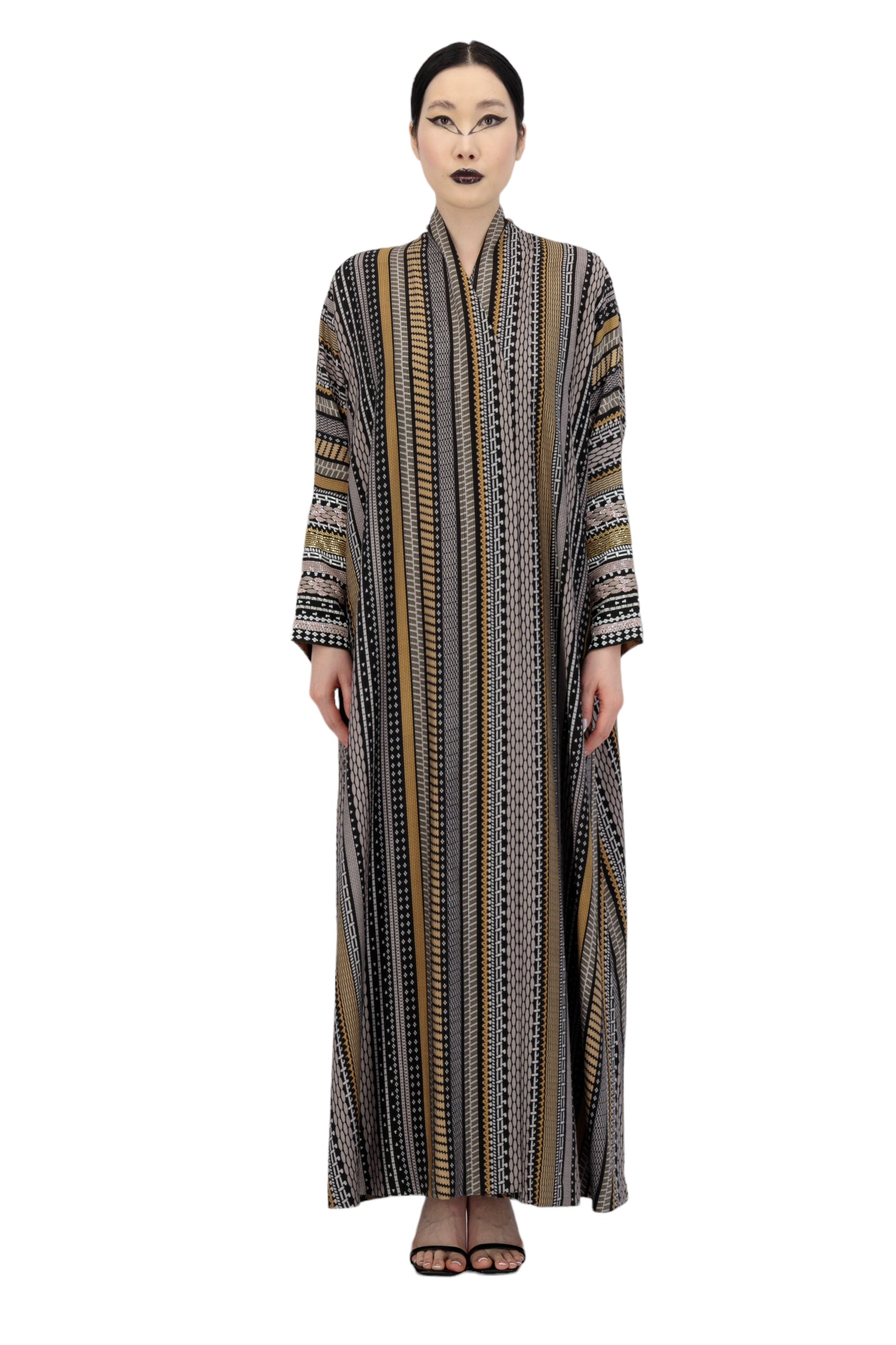 Linen wrap abaya with embroidered embellished slim sleeves.