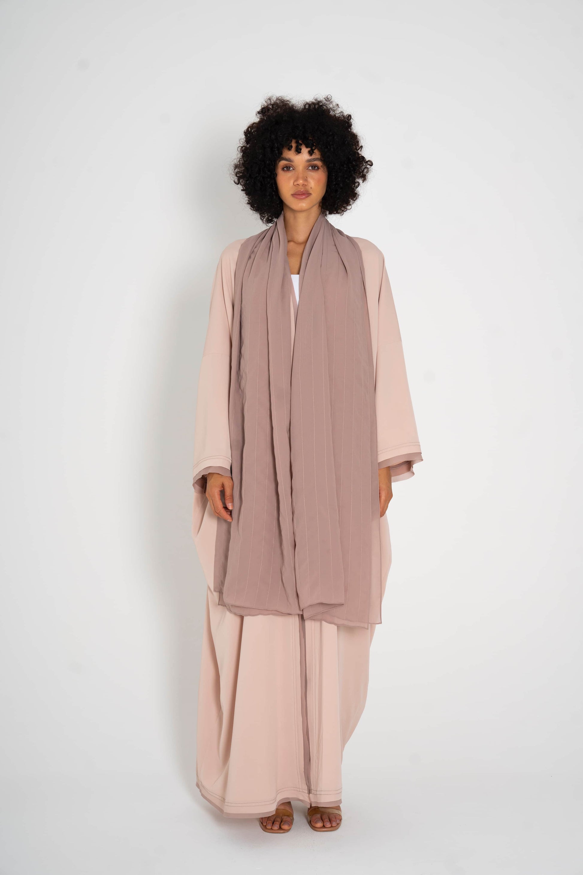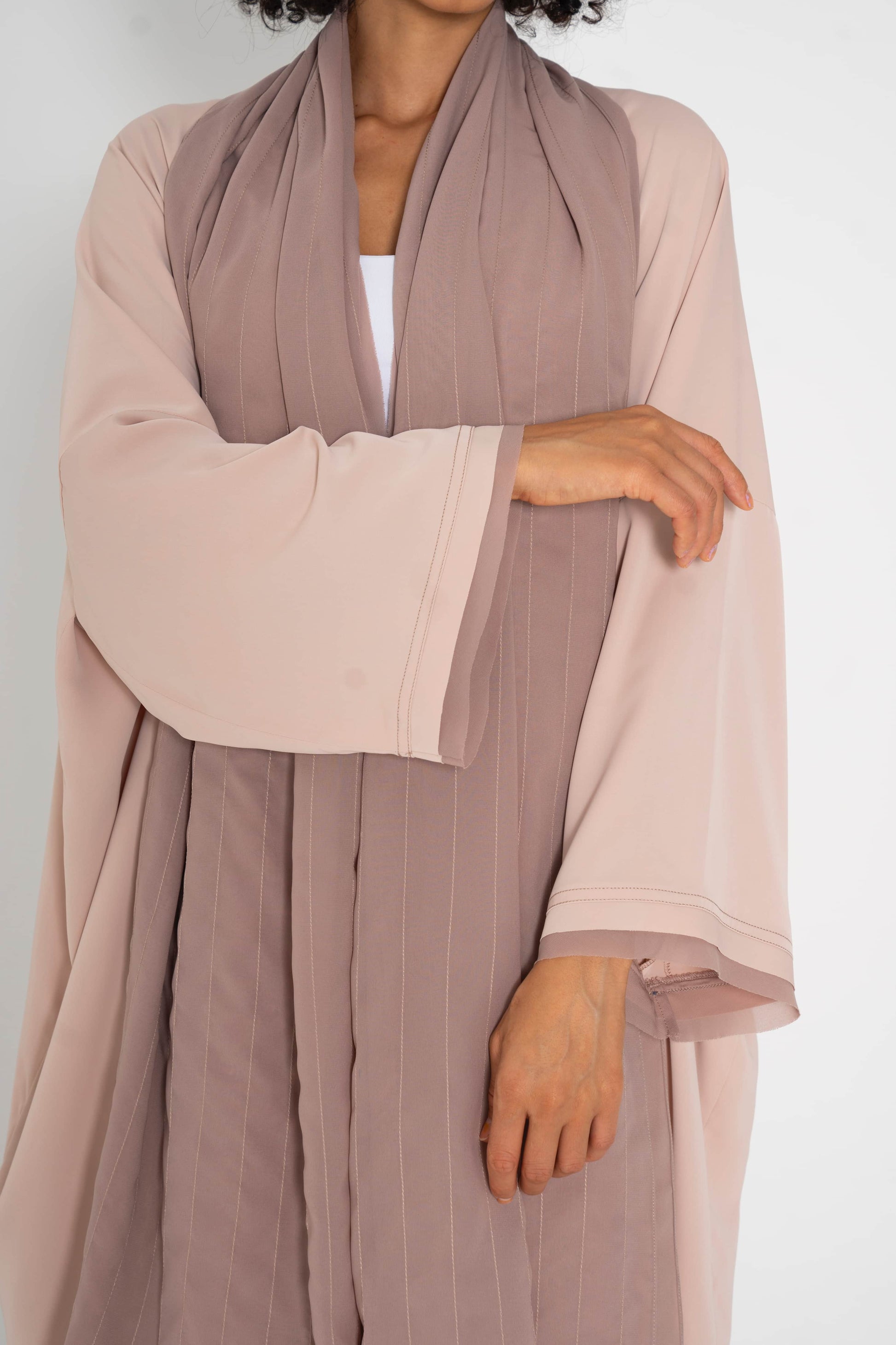 Light crepe wrap abayas with chiffon accent border that matches the scarfs.